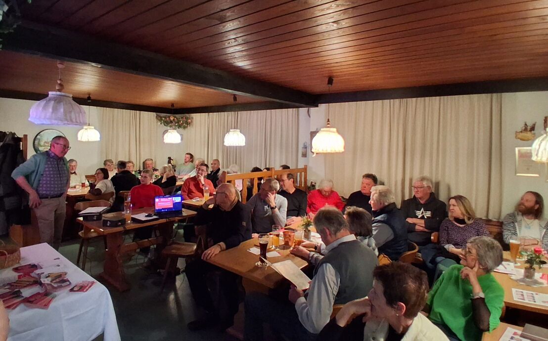 Bürgermeisterkandidat und Listenführer Erhard Fleischmann freute sich über das bis auf den letzten Platz gefüllte Gasthaus Café Schneider. Fleischmann stellte sich und seinen persönlichen Werdegang vor und skizzierte die Ziele, die sich er und die Kandidierenden für die Entwicklung der Marktgemeinde gesetzt haben. „Für mich als Energietechniker stehen natürlich kommunale Wärmeplanung, ein funktionierendes Klimaschutzmanagement und die Bildung eines Energie- und Umweltbeirats im Mittelpunkt“, so Fleischmann.